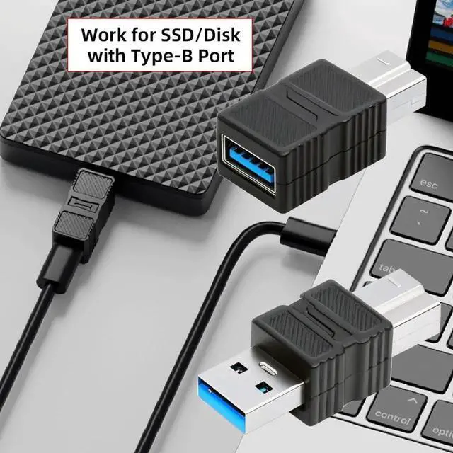 Work for USB 3.0 Type-B device like SSD Camera printer device. Not work for USB2.0 Type-B port.
