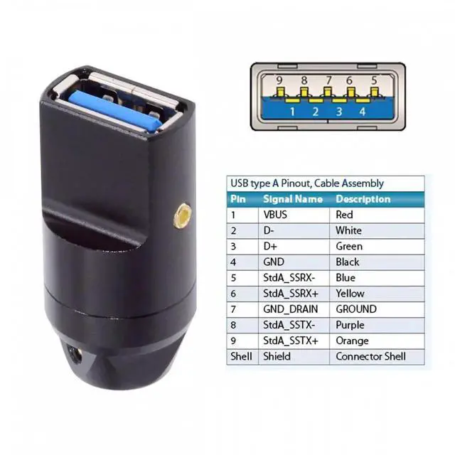 USB 3.0 Type-A Female Socket Receptacle Connector Solder Type with Aluminum Alloy Shell Customization for 6.0mm Cable
