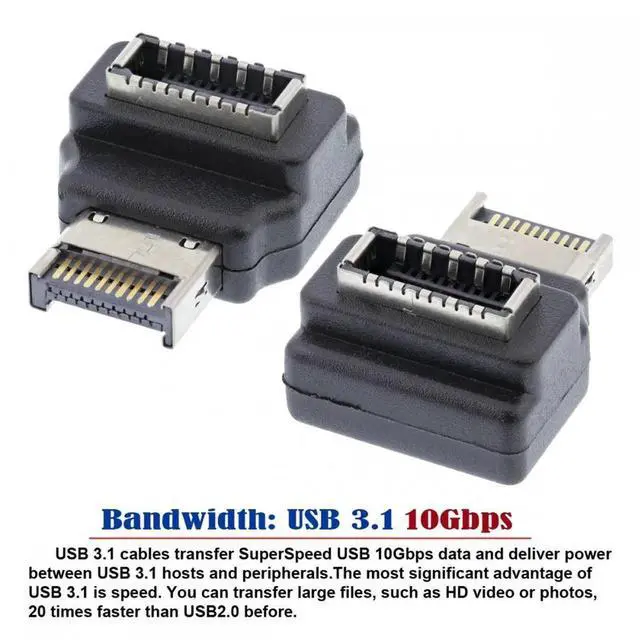 Type-E Male to Type-E USB 3.1 Front Panel Header Female Motherboard Extension Data Adapter 90 Degree Angled