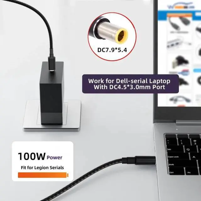 Use it with the 100W/65W Type-C Charger to charge your Laptop with DC 5.5mm port.