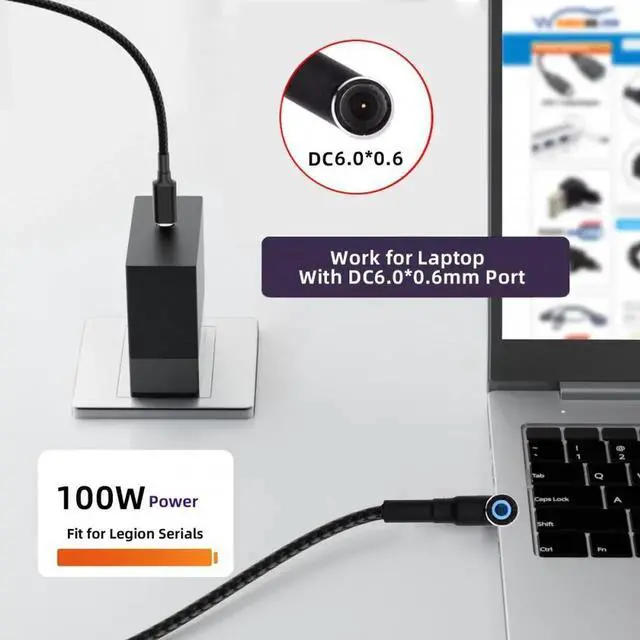 Use it with the 100W/65W Type-C Charger to charge your Laptop with DC 5.5mm port.