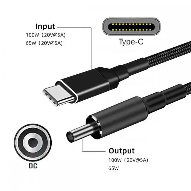 100W Type C USB-C Input to 20V DC 5.5*2.1mm Output Power 20V 5A 65W PD Charge Cable for Laptop