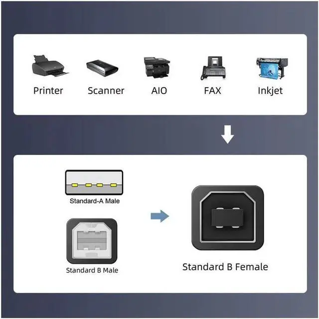 • USB 2.0 Printer Cable Provides a high speed of 480 Mbps, standard 2.0 connector provides excellent electrical conductivity, and high-speed transmission data is fast and accurate.