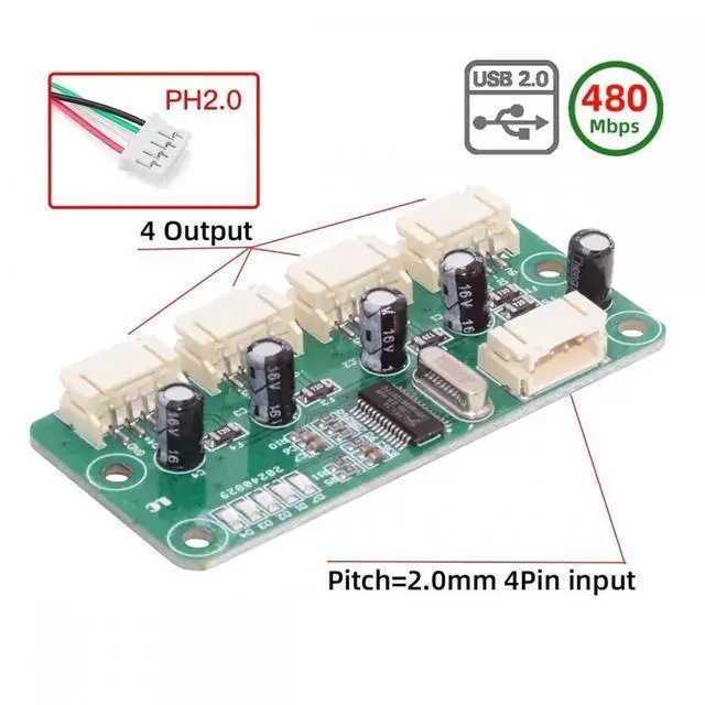 USB 4Pin Pitch=2.0mm Wafer 1-to-4 Four Ports HUB PCBA PCs 4 Devices for Keyboard Mouse Scanner Printer