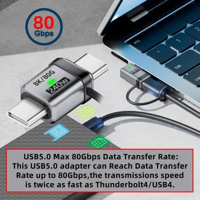 ThisUSB5.0 adapter can Reach Data Transfer Rate up to 80Gbps,the transmissions speed is twice as fast as Thunderbolt4/USB4.