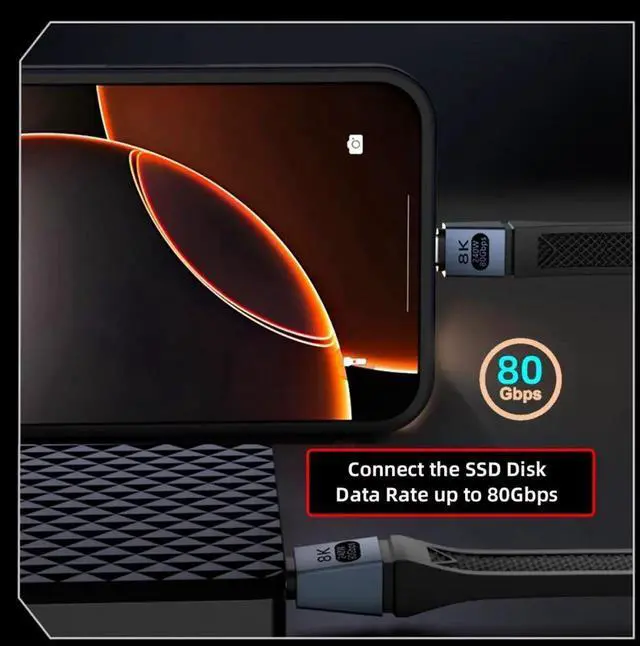 5. ThisUSB5.0 Cable can Reach Data Transfer Rate up to 80Gbps,the transmissions speed is twice as fast as Thunderbolt4/USB4.