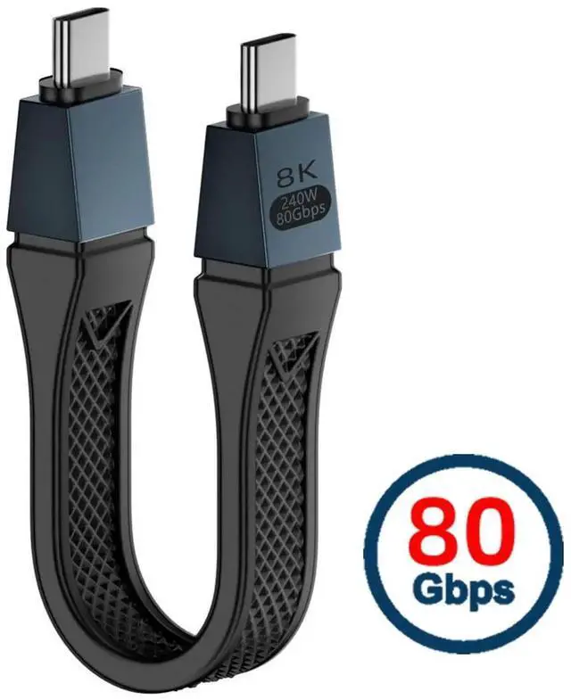 • USB5.0 80Gbps Flat Slim FPC Cable 13cm with 240W and 16K@30hz 8K@60Hz 5K@60Hz Compatible with USB4.0 Thunderbolt3/4/5