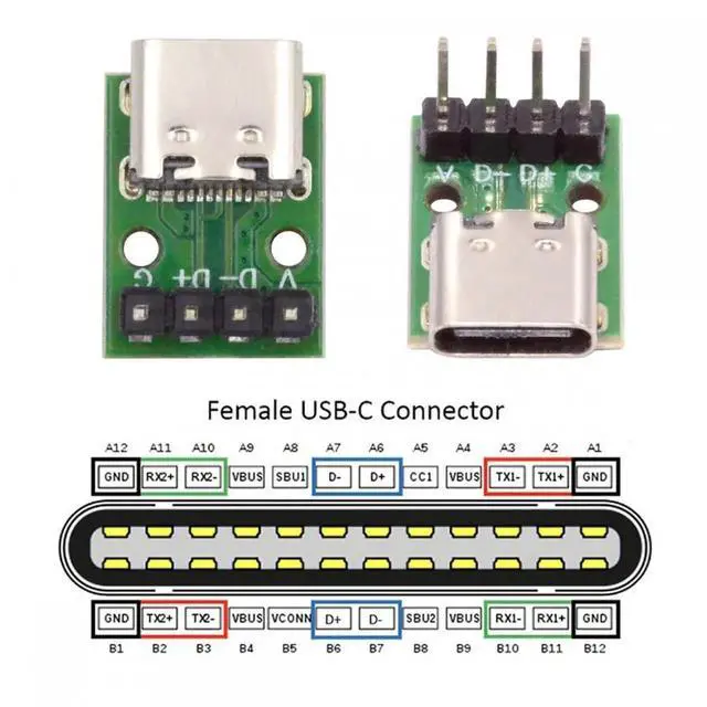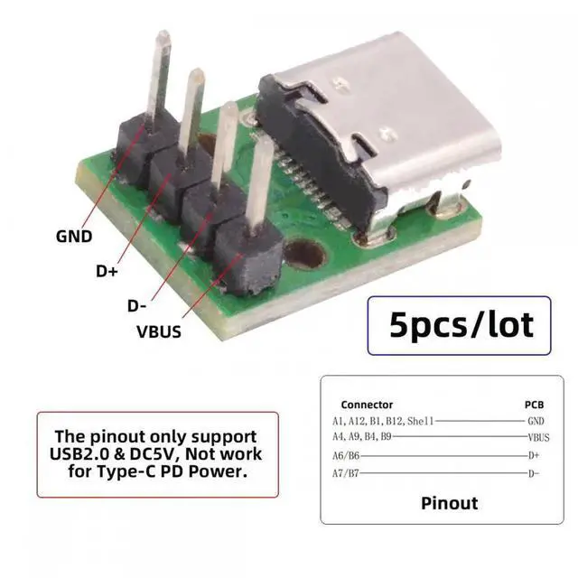 Note: The pinout only support USB2.0 data DC5V power, Not work for Type-C PD function.