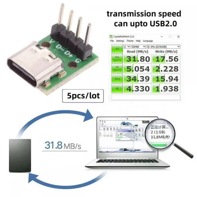 Data transfer: Support USB2.0 port and 480Mbps Data rate, High speed data transfer. Experience fast data transfer speed with the USB-C.