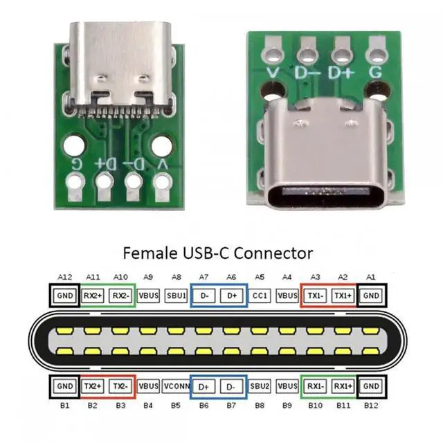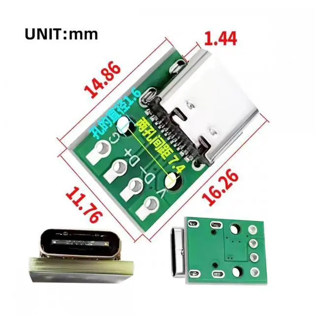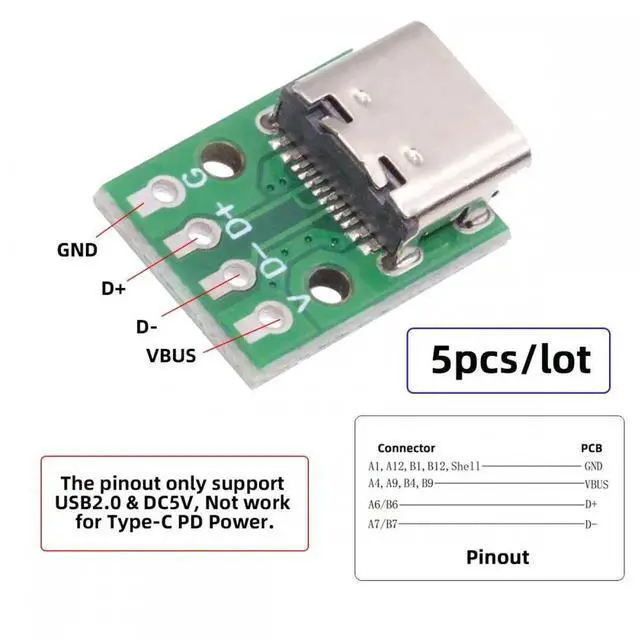 Note: The pinout only support USB2.0 data DC5V power, Not work for Type-C PD function.