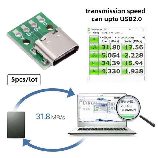 Data transfer: Support USB2.0 port and 480Mbps Data rate, High speed data transfer. Experience fast data transfer speed with the USB-C.