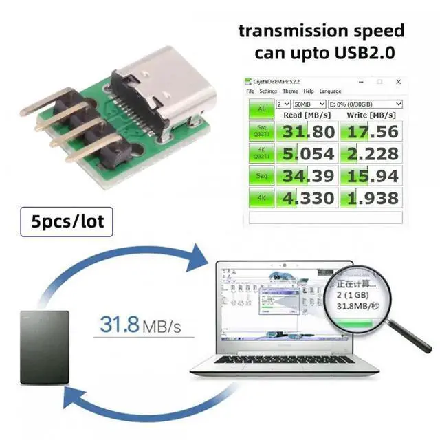 Data transfer: Support USB2.0 port and 480Mbps Data rate, High speed data transfer. Experience fast data transfer speed with the USB-C.