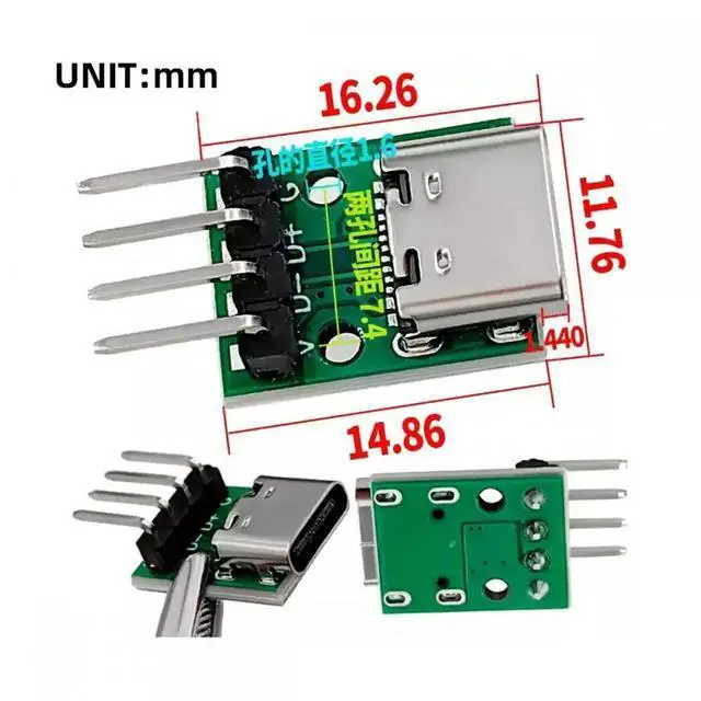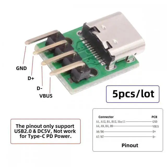 Note: The pinout only support USB2.0 data DC5V power, Not work for Type-C PD function.