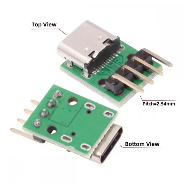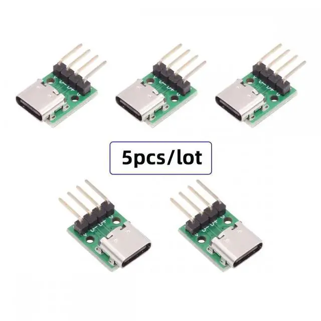 5pcs/set DIY OEM Type C Female Socket Connector to 4Pin Pitch=2.54mm Contact Header Horizontal USB2.0 Pinout DC 5V Power