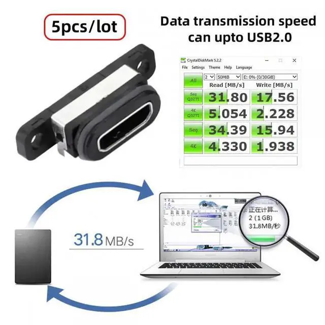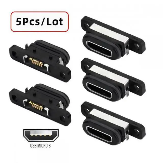 5pcs/set DIY OEM USB2.0 Micro-B Female Receptacle Socket Connector with Mounting Waterproof SMT Type 480Mbps