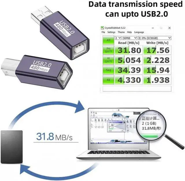 • The package included 2pcs adapter. One Side is Female USB B Type,The Other Side is USB B male or A male.