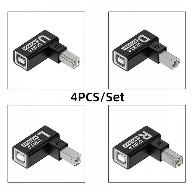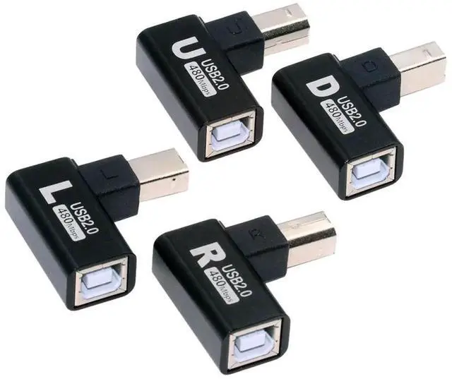 4pcs/lot USB 2.0 Type-B Male to Female Extension Adapter Horizontal Vertical Angled 90 Degree for Printer Scanner