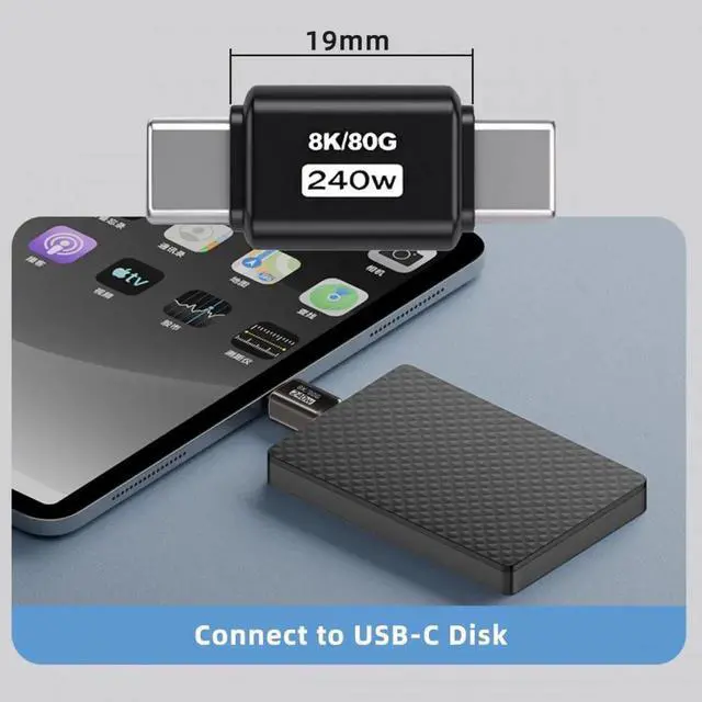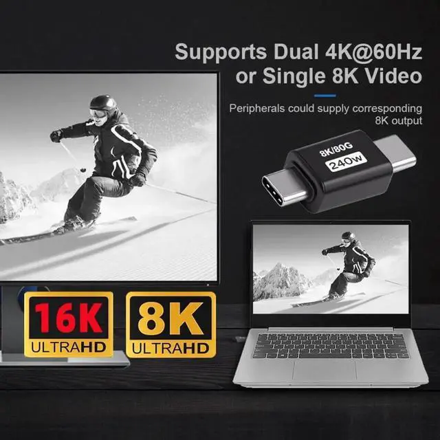 USB5.0 80Gbps Male to Male Extension Adapter with 240W 16K 8K 5K Compatible with USB4.0 Thunderbolt3/4/5