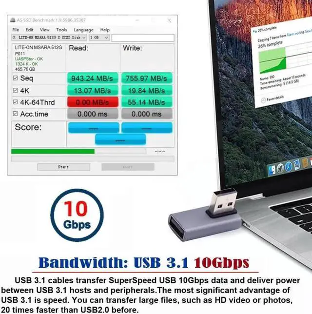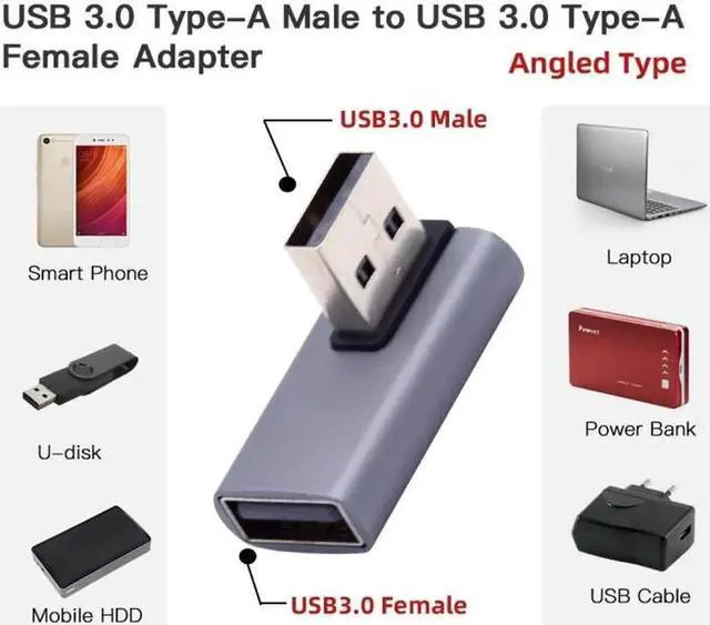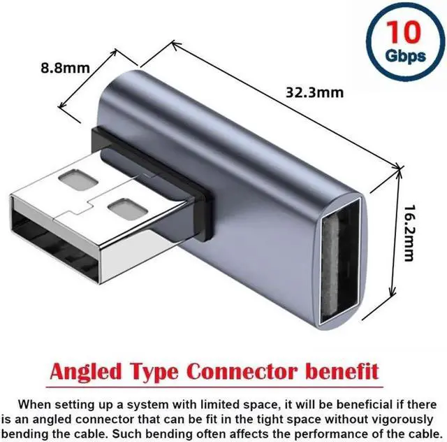Angled USB 3.0 Adapter, Type A Male/Female,Support 10Gbps data transfer rating.