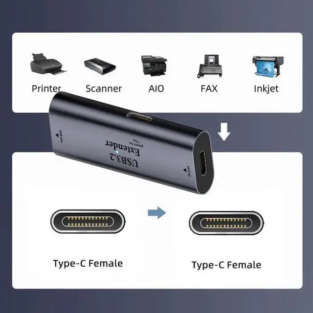 USB 3.0 Repeater Adapter Type-C Female to Type-C Female Extender with Chipset for Camera Printer Computer