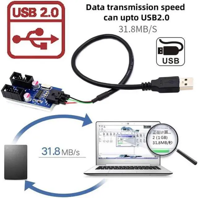 USB 2.0 Type-A Male 1 to 2 Female Motherboard 9pin Header Extension HUB Connector Adapter Port Multilier