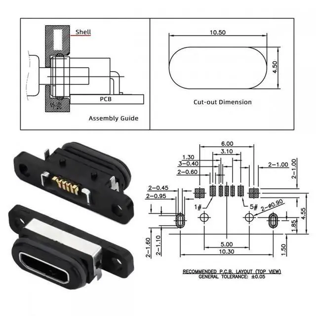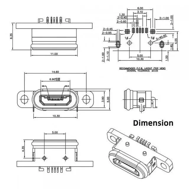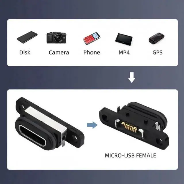 5pcs/set DIY OEM USB2.0 Micro-B Female Receptacle Socket Connector with Mounting Waterproof SMT Type 480Mbps