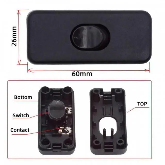 In-line power cord switches are made of PVC material, which is sturdy and small in size; Metal;Size:60 x 26 x 16mm?/p>