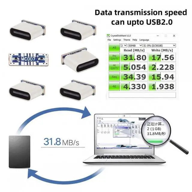 Compliant with USB Base Specification 2.0, Output USB Type-C interface. Compliant with USB 2.0 Hi-Speed (480Mbps), USB 1.1 Low-Speed (1.5Mbps).