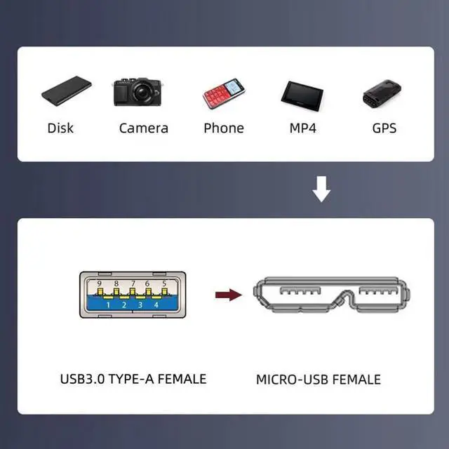 Adapts USB 3.0 Type-A Female Connections to USB Micro 3.0 Male and vice-versa, With this cable, you can directly connect micro usb 3.0 socket, converted to usb 3.0 extension.