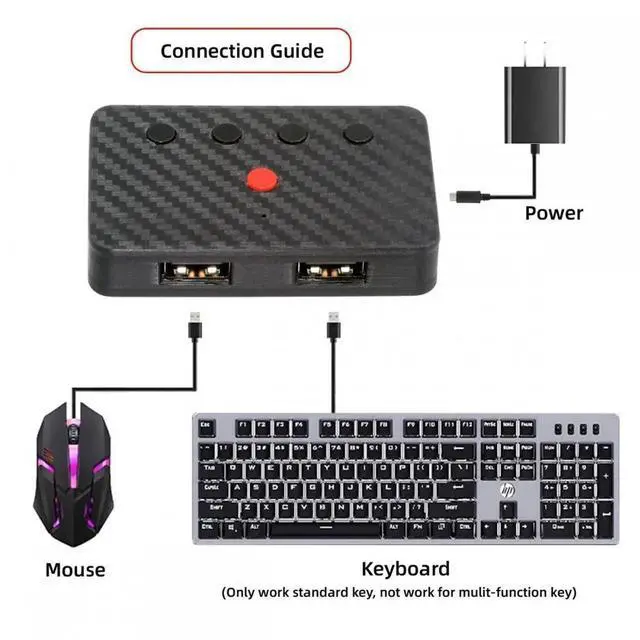 This converter can convert wired USB keyboard and mouse into wireless, and is suitable for use on laptops, tablets, and phones that need to use wireless keyboards and mice.