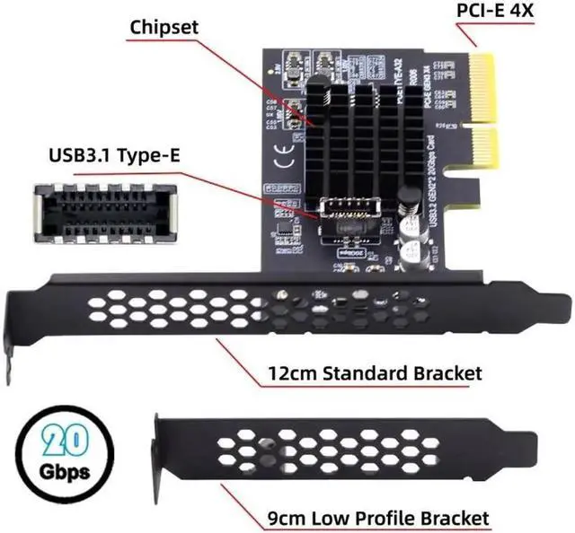 The adapter is a converter to convert the available PCI-E 4X/8X/16X of a motherboard into a USB 3.2 Gen2 Type-E 20Gbps Front Panel Socket port.