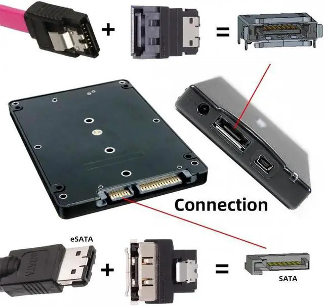 ESATA to SATA one end is ESATA external connector and the other end is SATA connector, which can be connected to ESATA and SATA cables used and for extension.