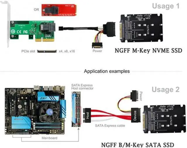 SFF-8639 NVME U.2 to Combo NGFF M.2 M-key SATA PCIe SSD Adapter for Mainboard Replace SSD 750 p3600 p3700