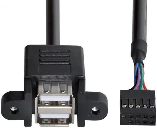 50cm Dual USB 2.0 A Type Female to Motherboard 9 Pin Header Cable with Screw Panel Holes
