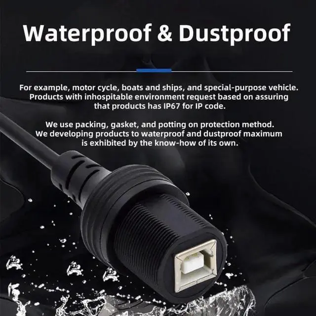 Package include 1pc Waterproof standard B type usb car mount cable