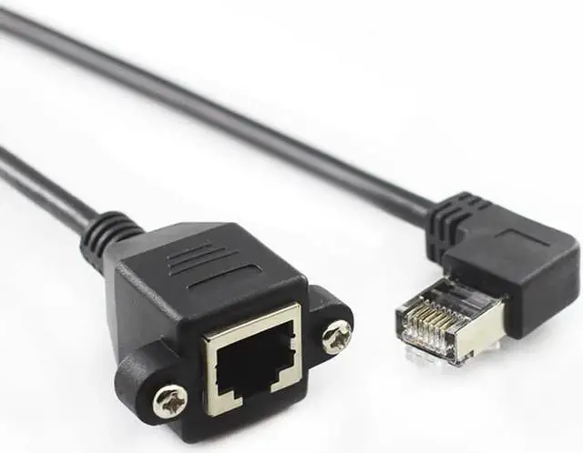 UT-011-RI Right Angled 90 Degree 8P8C FTP STP UTP Cat6 Male to Female Lan Ethernet Network Extension Cable with Panel Mount Holes