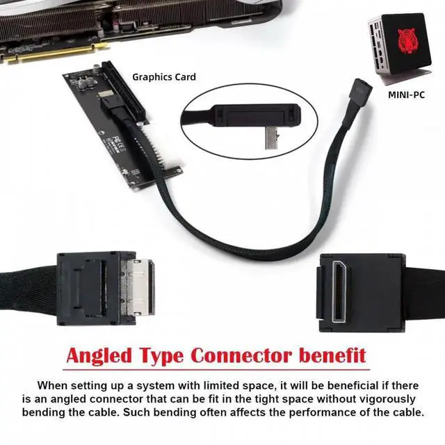 Data transfer rate up to 64Gbps, Transmits PCI Express 4.0 signals using the oculink protocol.