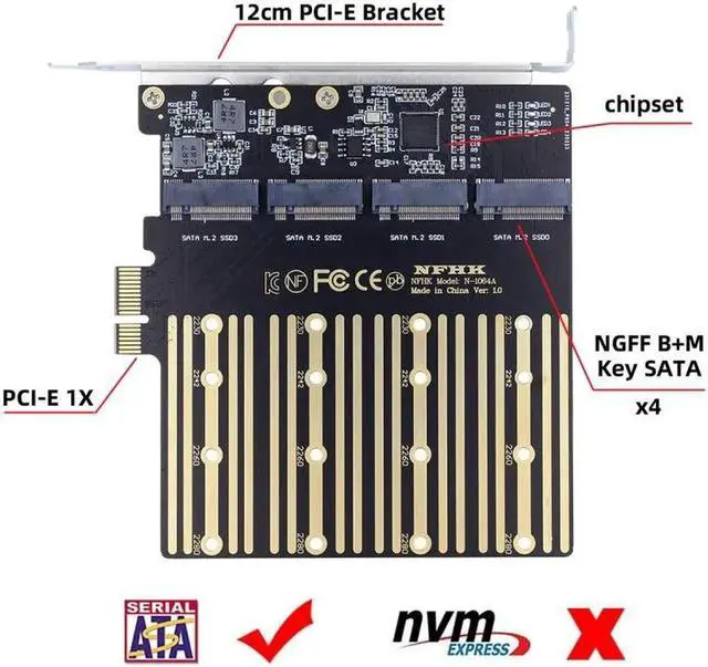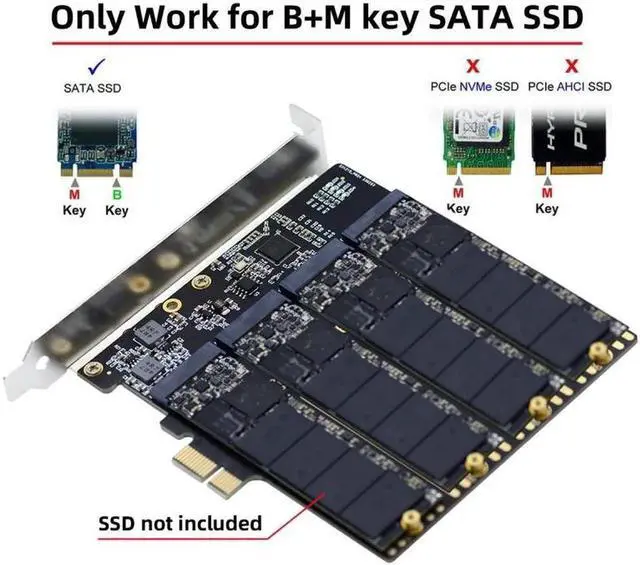 Four SATA NGFF Key B+M SSD to PCI-E 1x Motherboard Desktop Adapter Converter SSD Card ASM1064 2280