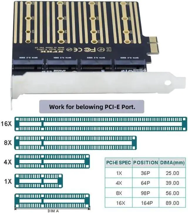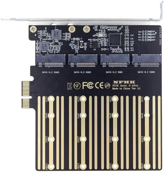 It has PCI-E 1x interfaces, which can be connected to four SSDs, and supports desktop motherboard PCI-E port.
