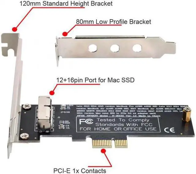 PCI Express PCI-E 1X to 12+16Pin 2013-2017 Mac Pro Air SSD Convert Card for A1493 A1502 A1465 A1466
