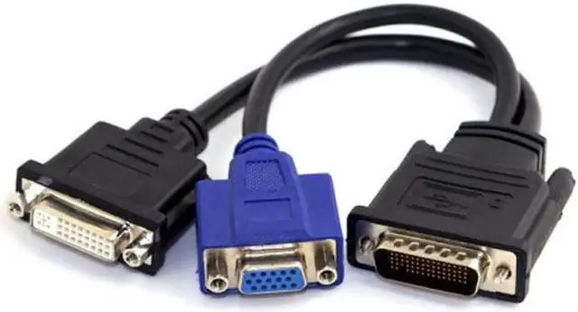 3. Splits your video card DMS59 Pin output to allow use of 1- DVI and 1 - VGA connected Monitor at the same time
