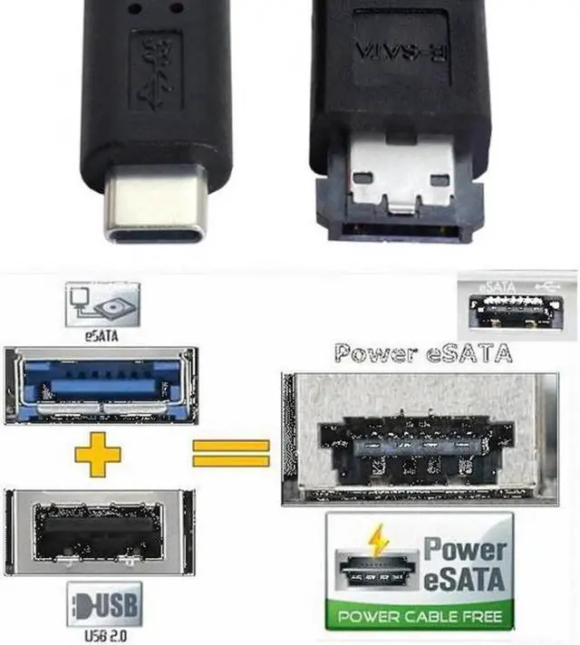 USB-C Type-C to Power Over eSATA DC5V Adapter USB3.0 to HDD/SSD/ODD eSATAp Converter