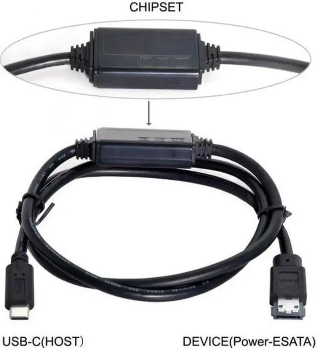 This 1m USB-C to eSATA / Power eSATA adapter lets you connect any external eSATA hard drive (HDD), solid state drive (SSD), or optical disc drive (ODD) through the USB-C port on your laptop or desktop.
