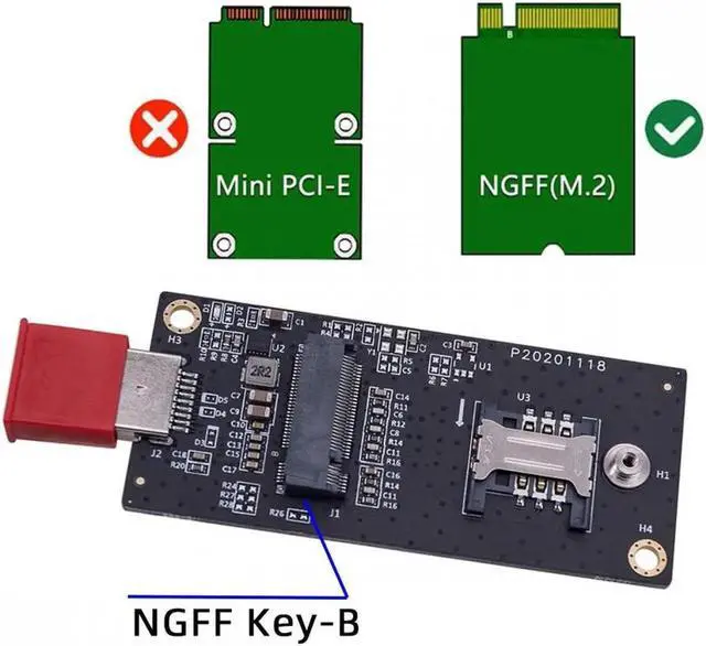 NGFF M.2 Key-B WWAN to USB 3.0 Adapter Riser Card w SIM Slot For 3G/4G/5G LTE Wireless Module Modem Card