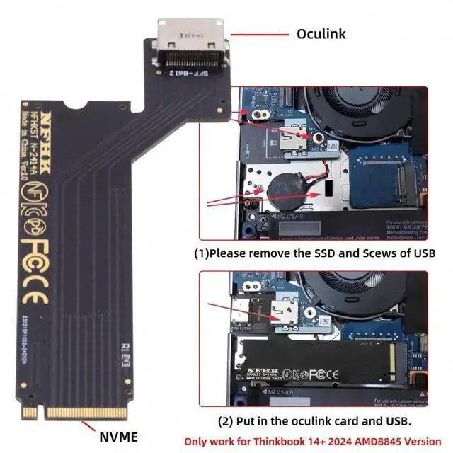 PCI-E 4.0 M.2 M-key to Oculink SFF-8612 SFF-8611 Host Adapter for 2024 ThinkBook 14+ AMD8845 External Graphics Card & SSD