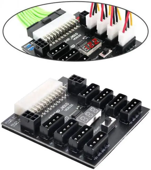 ATX PSU Server Power Board 24Pin to IDE 8x 4Pin +2x 6Pin Power Supply Board for CHIA ETH BTC Mining Miner