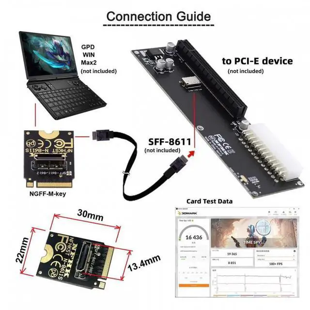 This convertor expands the 2230 M-Key system by one SFF-8612 oculink interface.