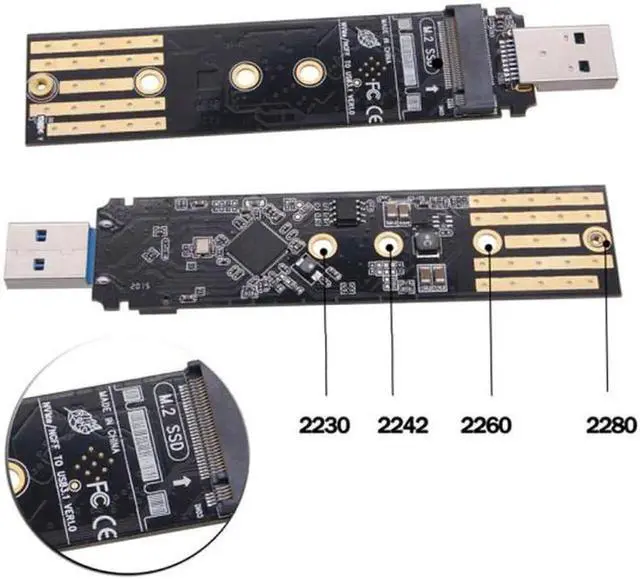 USB 3.0 to M.2(NGFF) NVME/SATA Storage adapter, providing one USB 3.0 connector on the host connection and one 67pin B key M.2 connector on the SSD storage devices connections.