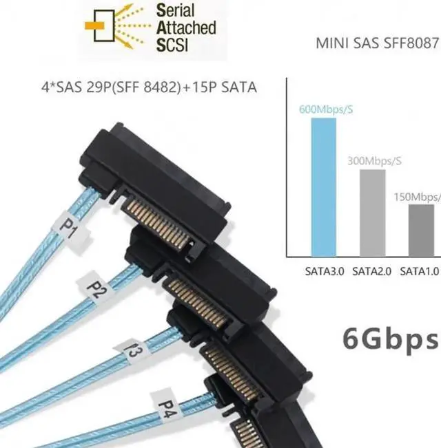 Internal Mini SAS SFF-8643 Host to 4 SAS 29Pin SFF-8482 Target Disk 6Gbps Data Server Raid Cable