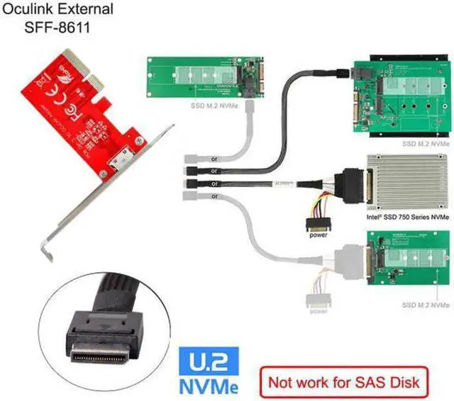 PCI-E 3.0 Express 4.0 x4 to Oculink SFF-8612 SFF-8611 Host Adapter for PCIe SSD with Bracket